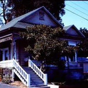 Slide, color transparency: about 1913 Queen Anne house at 242 Pitt Avenue, Sebastopol, California, 1975