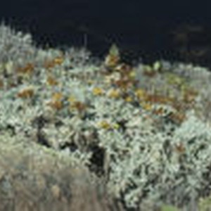 Scene of frosty green plants on the cliffs south of Wilson Cove.