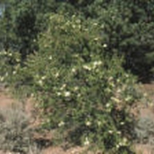 Medium sized plant with white flowers and a few plumes in the early stages of growth along the canyon's South Rim.