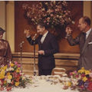 Image / George Deukmejian toasting with Queen Elizabeth II and Prince Philip