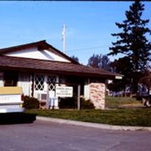 Slide, color transparency, Kodachrome: The Hansen & Boyle CPA office building in Sebastopol. 1977