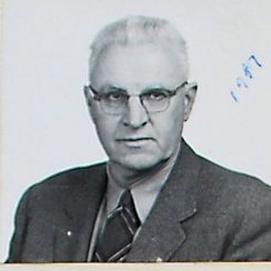 Photo, black and white: Oscar A. Hallberg, 1957. Owner of O. A. Hallberg & Sons Apple Products in Graton, CA.