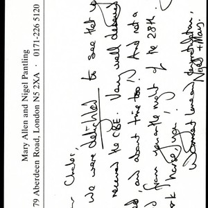 Card correspondence from Mary Allen and Nigel Pantling to Charles Handy congratulating Handy on his CBE; Charles Handy Papers; Box 13, Folder 27; 1 page