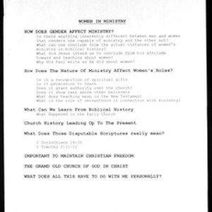 Women in ministry, [s.d.]. Syllabus? for a class? [Description English/roman)]