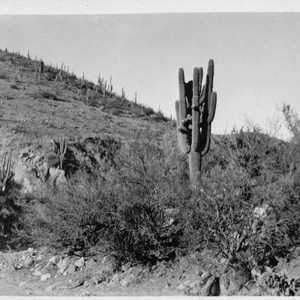 The label that accompanies this photo in the album reads "Carnegiea gigantea, native habitat." On a page of four photos, this is in the upper left.
