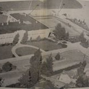 Photo--black and white: Aerial view of Analy High School, 1953.