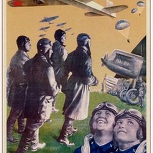 A poster encouraging the Soviet youth to become professional aviators. Caption reads, "Molodezh', -- na samolety / Молодежь, — на самолеты", meaning, "Youth, get on planes". [Description English/roman)]