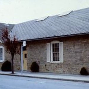 Print, color: The Hogan and Schoch building. The building was originally built, about 1904, as the powerhouse for the Petaluma and Santa Rosa Electric Railway. Circa 1970s.