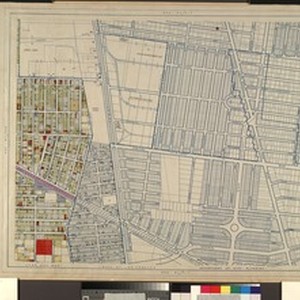WPA Land use survey map for the City of Los Angeles, book 8 (Downtown Los Angeles and Hyde Park to Watts District), sheet 31. Includes: [Title page and] legend [for Book] no. VIII Composite index to Land use map books [for Book 8] Index to Book no. 8. Land use survey - City of Los Angeles. Department of City Planning. These maps were prepared with the assistance of the Works Progress Administration project no. 665-07-G-226 through 1939 to 1940. The land use data contained herein was compiled from a survey made with the assistance of the Civil Works Administration project no. 642, State Emergency Relief Administration project nos. 1-F2-318 and 1-F2-318A and Works Progress Administration project nos. 65-3-4377, 1101-2011 and 465-03-3-106. This survey functioned from Dec. 18, 1933 to May 8, 1939 and covers approximately 460 square miles within the boundary of the City of Los Angeles. It includes 347 colored drawings bound in 10 volumes of which this is no. VIII. The land use survey was supervised by the Zoning Engineer. The land use maps were supervised by the Illustrative Planning Engineer for the Sponsoring Department.
