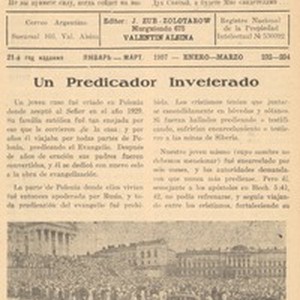 The Christian Herald was an informational organ of the Union of Pentecostal churches of "Assemblies of God" in South America. The journal was founded in August 1937 at the founding meeting of the Slavic Pentecostal churches of South America. Believers from Argentina, Paraguay, Uruguay and Brazil were present at the meeting. The purpose of the journal was to "carry unity and communication of the Spirit to the midst of believers in full Gospel". The journal united Pentecostal churches and became a link which connected believers scattered all over the world. Thus, letters of Christians of Evangelical faith from Germany, Belgium, France, the Netherlands, Canada, the United States, Uruguay, Paraguay, the Philippines, China, Australia and other countries were published in the journal journal. The first issue was published in Russia in October 1937. Subsequently, the journal spread to 40 countries where the Slavic diaspora lived. The headquarters of the journal was located in Buenos Aires. Juan Zub-Zolotarow was responsible for the journal. He was a permanent editor for 42 years. The journal was published for offerings of believers. Spiritually-edifying and theological articles of Donald Gee, Alfred Goets, R. Bratslavsky, N. Vodnevsky, D. Bespalov were published in the journal. On the last pages, as a rule, information from local churches and the mission and evangelical fields of North and South America, Canada, Africa, Australia, India, Europe and China was published. Thus the activity of such evangelists as Oral Roberts, Billy Graham, T. Giks, and William Brankham was reported in detail. [Description English/roman)] Христианский Вестник -- информационный орган Союза Пятидесятнических церквей «Собраний Божиих» Южной Америке. Журнал был основан в августе 1937 года на учредительном собрании славянских пятидесятнических церквей Южной Америки. На этом съезде присутствовали верующие с Аргентины, Парагвая, Уругвая и Бразилии. Цель журнала: «Нести единство и общение духа между верующими в полное Евангелие». Журнал объединил вокруг себя пятидесятнические церкви и стал как-бы связующим звеном между верующими, рассеянными по всему миру, публикуя письма христиан веры евангельской-славян из Германии, Бельгии, Франции, Голландии, Канады, Соединенных Штатов, Уругвая, Парагвая, Филиппин, Китая, Австралии и других стран. Первый номер журнала, издававшегося на русском языке, вышел в октябре 1937 года. Впоследствии журнал распространялся более чем в 40 странах, где проживала славянская диаспора. Штаб квартира журнала находилась в Буэнос-Айресе. Ответственным за журнал был назначен И.Зуб-Золоторев, который и был бессменным редактором на протяжении 42-х лет. Издавался журнал на добровольные пожертвования верующих. В журнале печатались духовно-назидательные и богословские статьи Дональда Джи, Альфреда Гоетца, Р.Брацлавского, Н.Водневского, Д.Беспалова. На последних страницах, как правило, публиковались информационные сообщения от поместных церквей и евангелизационных и миссионерских полей Северной и Южной Америки, Канады, Африки, Австралии, Индии, Европы и Китая. Так освещалась подробно деятельность евангелистов: Орала Робертса, Билли Грэма, Т.Гикса, Уилльяма Бранхама. [Description (original non-English/roman language/script)]