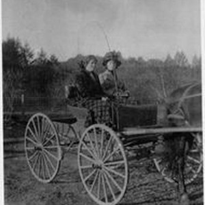 Photo--black and white: Jessie Woodbury and a friend in a one-horse buggy, about 1890s.