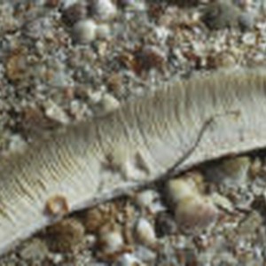 A whalebone from a dead baby whale washed up on the sands of Shell Island, located in Scammon's Lagoon.