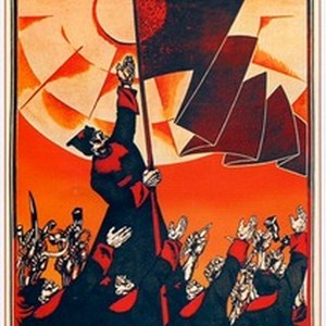 A poster showing a group of the Red Army soldiers making a sacred promise. Caption reads, "Torzhestvennoe obeshchanie / Торжественное обещание", meaning, "A sacred promise". [Description English/roman)]