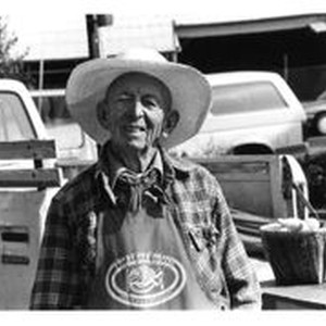 Photo--black and white: Two photos of Sebastopol Farmers Market exhibitor Joe Arden Pence, DDS. Photos taken in early 2000's when Joe was about 90 years old. Joe represents Mariapple Farm of 1250 Wagnon Road in Sebastopol.