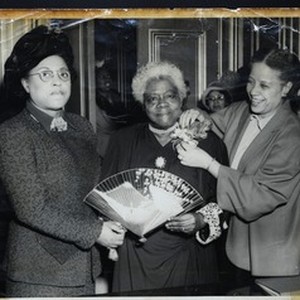 Photograph of 3 unidentified women, Washington, DC, [s.d.]. "Fred Harris, photographers, 1435 Montello Ave., N.E., Wash. 2, D.C., Atlantic 5018" -- stamped on back. [Description English/roman)]