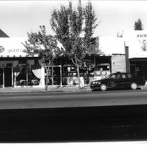 Photo, black and white: Downtown Sebastopol between addresses 110 and 112 North Main Street taken in 2006, . Photos from "Sebastopol Now and Then" exhibit at West County Museum in September 2006. Shops seen are "La Dolce V,""Incredible Records" and "Sumbody."