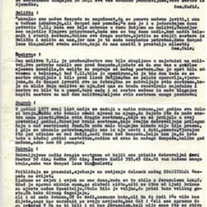Circular letter for December 1977 containing short messages from sisters in Jügesheim, Belišće, Leskovac, Zagreb and a short thanks for the received financial support. [Description English/roman)] Okružno pismo za prosinac 1977. godine koje sadrži kratke poruke sestara iz Jügesheima, Belišća, Leskovca i Zagreba te kratku zahvalu za primljene dobrovoljne priloge. [Description (original non-English/roman language/script)]