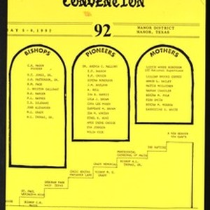 Program for the 9th women convention, Texas southeast, Church of God in Christ, Manor, Texas, 1992 May 5-8. [Description English/roman)]