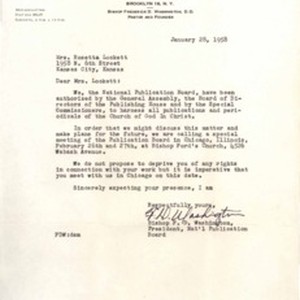 F. D. Washington, letter, 1958 Jan. 28, to D.J. Young Publishing Company regarding publishing. [Description English/roman)]