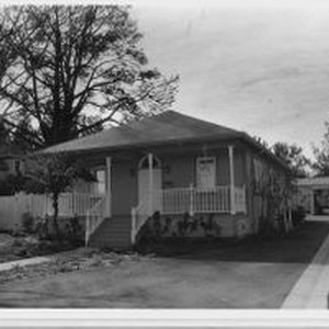 Photo, black and white: Sebastopol house at 858 Gravenstein Highway South a Queen Anne cottage in the Wightman Addition. House photographed in 1993 by Evelyn McClure for her book "Sebastopol, California : History, Homes and People."
