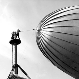 Attaching blimp nose to mooring mast - Title:Array - Image from the Theodore Bolduc collection. Ted enlisted in the Navy at the start of World War II and served as an Aviation Photographer, assigned primarily to "Lighter Than Air" (blimp) squadrons in Georgia and Florida. He married Navy nurse Bernice Fournier, from Waterville, Maine, in 1946.------Please Tag these images so that the information can be permanently stored with the digital file.---Repository: San Diego Air and Space Museum