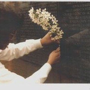 Photo--color: Vicki Clem placing flowers at the location of Edward G. Rainford's name at the Vietnam Veterans Wall--The Moving Wall post 1984. Sebastopol resident Spec-4 Edward George Rainford was wounded in combat on June 13, 1968 and was helicoptered to the USS Hope. Rainford was able to call home a few days before he died. He is interred at Calvary Cemetery in Santa Rosa. Rainford attented Analy High School and was one of 12 children of Mr. & Mrs. John Rainford.