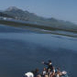 A group of students prepare to ride out in a small boat onto Morro Bay.