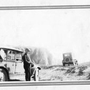 Karl Asman and his Dodge at Bodega Bay area, about 1920s.