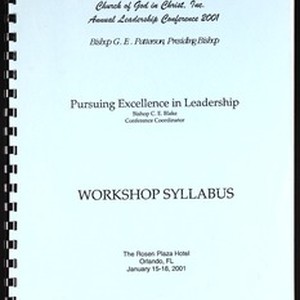 Church of God in Christ (COGIC), leadership conference program, "Pursuing excellence in leadership", Orlando, Florida, 2001 January 15-18. [Description English/roman)]