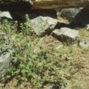 Small green leaves with small red flowers in Icehouse Canyon.