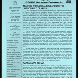 Advocate, vol. 7, no. 2 (2009 August-September). COGIC (Church of God in Christ) scholars fellowship. [Description English/roman)]