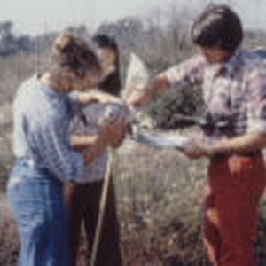 Rhoda Au and Rainier Manzanilla collecting insects into a jar.