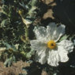 Mojave pricklypoppy exhibiting a white flower.