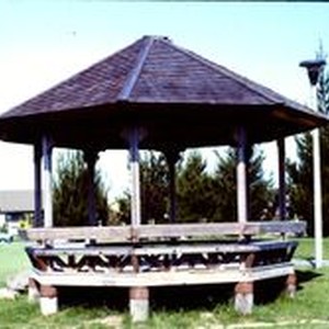 Slide, color transparency: The construction of the Gazebo at Brookhaven Park in Sebastopol, summer, 1976. The Gazebo was presented to the community of Sebastopol by the Sebastopol Bicentennial Committee on September 26, 1976.