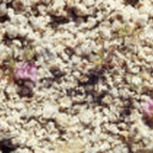 White pebbles and small pink flowers in a wash at the bottom of Cottonwood Canyon.