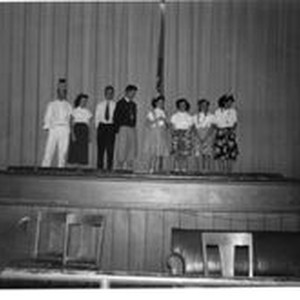 Photo--black and white: 1951 Analy High School students on the auditorium stage.