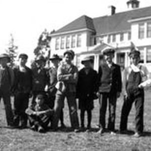 Photo--Black and white: Children in front of Sebastopol Elementary School