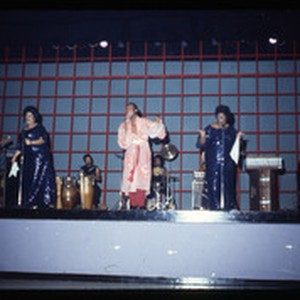 Image from a collection of 35mm photographic slides depicting nightlife events, circa 1970-1977, including images of a Sylvester concert and what may be Halloween 1977. The images predominantly depict Black performers and attendees, including people in costumes and drag. These slides were salvaged by the donor, Deborah Deegan.