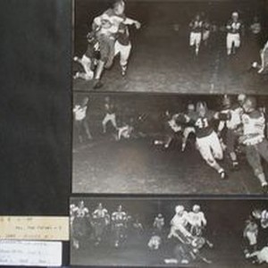 Photo--black and white: Analy High School Tigers football team of fall 1950. Three photos of the Analy Tigers vs San Rafael on November 3rd, 1950. Caption: "Board #1." Analy 27--San Rafael 6.