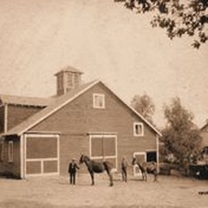 Photo, black and white: The Hallberg Ranch Drier in 1897. The drier is seen to the background at the right.