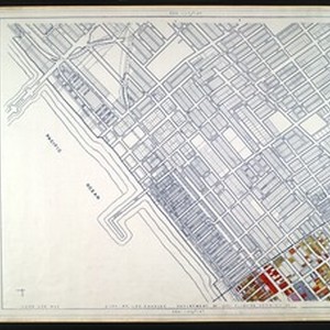 WPA Land use survey map for the City of Los Angeles, book 9 (Pacific Palisades Area to Mines Field (Municipal Airport)), sheet 14. Includes: [Title page and] legend [for Book] no. IX Composite index to Land use map books [for Book 9] Index to Book no. 9. Land use survey - City of Los Angeles. Department of City Planning. These maps were prepared with the assistance of the Works Progress Administration project no. 665-07-G-226 through 1939 to 1940. The land use data contained herein was compiled from a survey made with the assistance of the Civil Works Administration project no. 642, State Emergency Relief Administration project nos. 1-F2-318 and 1-F2-318A and Works Progress Administration project nos. 65-3-4377, 1101-2011 and 465-03-3-106. This survey functioned from Dec. 18, 1933 to May 8, 1939 and covers approximately 460 square miles within the boundary of the City of Los Angeles. It includes 347 colored drawings bound in 10 volumes of which this is no. IX. The land use survey was supervised by the Zoning Engineer. The land use maps were supervised by the Illustrative Planning Engineer for the Sponsoring Department.