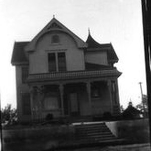 Photo--black and white: Queen Anne home built in 1903 by George Strout at 253 Florence Avenue in Sebastopol. Mr. Strout was a master carpenter especially known for his staircases. The house remained in the family until the 1970s. The home is on the National Register of Historic Places. Mr. Strout and his son, A. L. Strout owned the Analy Planing Mill around 1895.