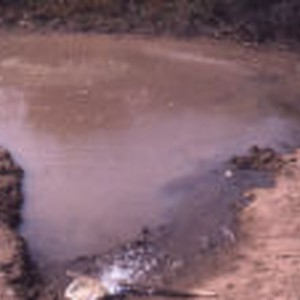Close-up of subdivided pond outside of the west berm of pHake Lake at Bernard Field Station.