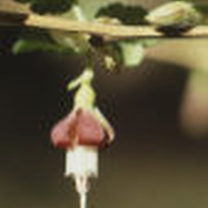 Close up of tiny flower with white core and and red colored outer petals curled back.