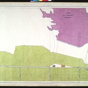 WPA Land use survey map for the City of Los Angeles, book 1 (North Los Angeles District), sheet 14. Includes: [Title page and] legend [for Book] no. I Composite index to Land use map books [for Book 1] Index to Book no. 1. Land use survey - City of Los Angeles. Department of City Planning. These maps were prepared with the assistance of the Works Progress Administration project no. 665-07-G-226 through 1939 to 1940. The land use data contained herein was compiled from a survey made with the assistance of the Civil Works Administration project no. 642, State Emergency Relief Administration project nos. 1-F2-318 and 1-F2-318A and Works Progress Administration project nos. 65-3-4377, 1101-2011 and 465-03-3-106. This survey functioned from Dec. 18, 1933 to May 8, 1939 and covers approximately 460 square miles within the boundary of the City of Los Angeles. It includes 347 colored drawings bound in 10 volumes of which this is no. I. The land use survey was supervised by the Zoning Engineer. The land use maps were supervised by the Illustrative Planning Engineer for the Sponsoring Department.