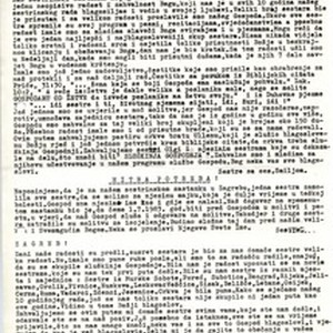 Circular letter from July 1983 about women's work in Zagreb and Belgrade, with a short prayer request for an elderly woman who was ill. [Description English/roman)] Okružno pismo iz srpnja 1983. godine o ženskom radu u Zagrebu i Beogradu te kratka molitvena potreba za stariju ženu koja je bila bolesna. [Description (original non-English/roman language/script)]