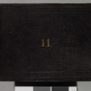 Album is bound in black textured material. The number "11" is embossed in gold on the cover. The number "11" is also affixed to the top of the spine with glue. Contains photographs taken by Jack London while on assignment to cover the Russo-Japanese War. These photographs were not taken by London, but rather commercially produced for sale to newspapers and the tourist trade. Based on clothing styles and place names therein, photos starting on page 20 appear to have been taken in Japan.