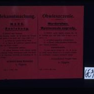 Image / Bekanntmachung. Mord. Auslobung. ... Lodz, den 5. Marz 1915. ... Obwieszczenie ... …