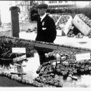Postcard--photo--black and white: Sebastopol's Gravenstein Apple Show display of comparison of the Landing of Columbus and Present day 1912.