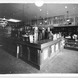 Photo--J. F. Triggs Auto Parts store at 130 South Main Street Sebastopol. Delbert Triggs, right, and his father J. F. Triggs left are seen behind the counter. See page 2 for history of class case to the right.
